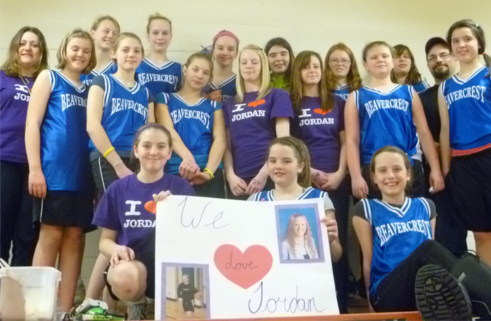 The Beavercrest Girls Basketball Team played in honour of Jordan at the South-East Basketball Tournament on March 7th. Last year, Jordan was the Assistant Coach of the team and the girls wanted to ensure that she was with them "in spirit" this year. They created a poster of Jordan which was displayed proudly on the wall of the gym throughout the tournament; wore their "I love Jordan" t-shirts and wrote her jersey number on their hand. The girls came second overall in the tournament and it was obvious that Jordan was there cheering them on!